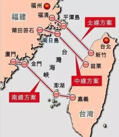 台湾海峡隧道是一项连接台湾海峡东西两侧中国大陆与台湾的工程。最短的是北线,起于福建的平潭岛,止于台湾桃园海滨,全长125公里。最长的是南线,即厦门-金门-澎湖-嘉义海滨,跨海总长约207公里。中线则从泉州到台湾台中。其中的北线方案由于直线距离最短、造价最低,历史上从未发生过超过7级的大地震,而且两端接近福州与台北,可最大限度发挥经济辐射作用。